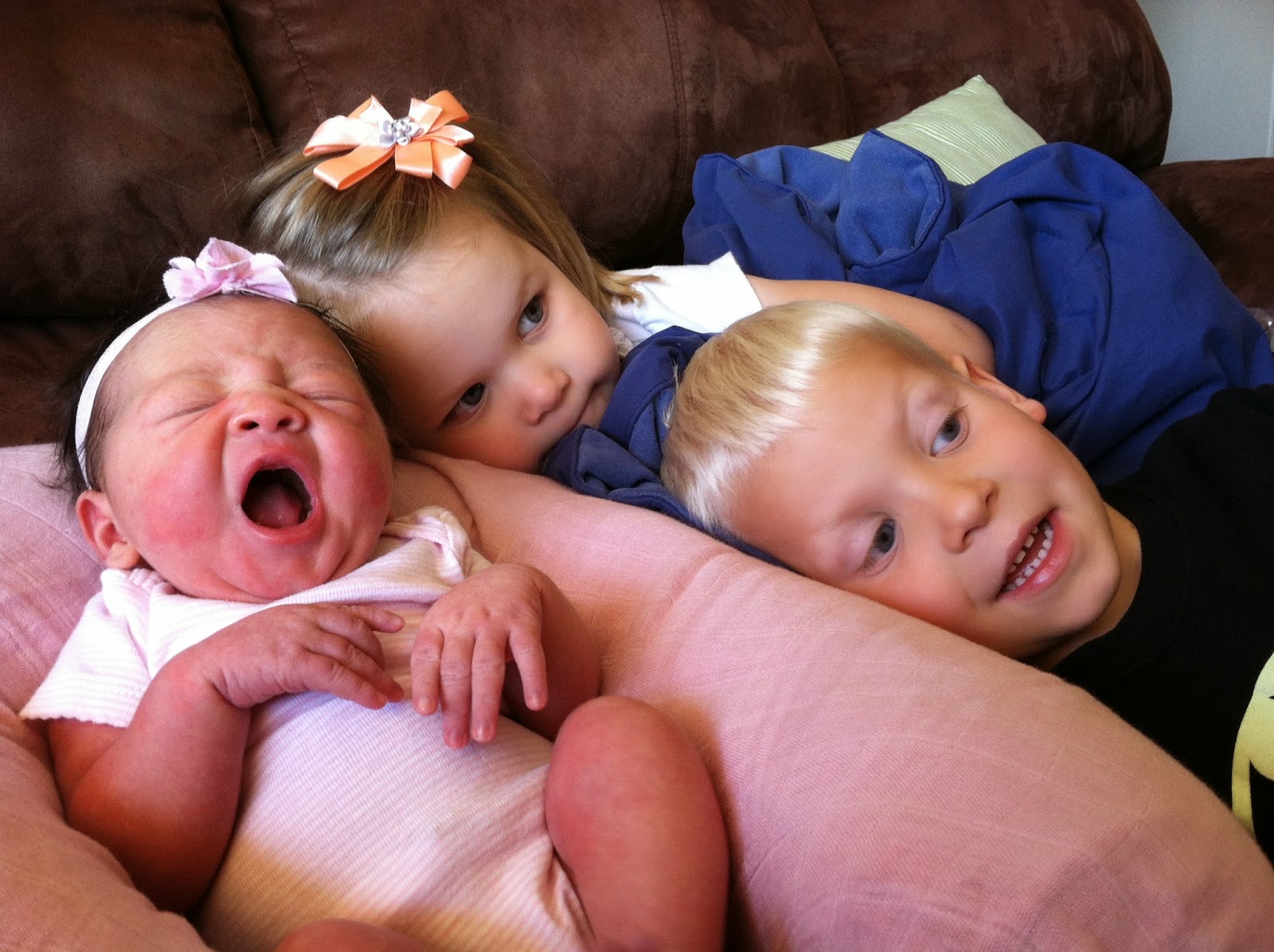 So, I have contractions from about 20 weeks. They're not just Braxton Hicks, but I get those a lot too.I'm like one big Braxton Hicks contraction for the last few months of my pregnancies. When I started my every-week-appointments my doctor and nurse practitioner would say, "you're [this much dilate] but this is your fourth pregnancy, so things could change really fast. You could have this baby any moment". I would then have dreams at night of going into labor while driving home from appointments, while taking care of kids without Paul around, or just doing random things that would warrant some time of chaotic event. Anyway, Paul's mom was flying in Tuesday the 6th, and we decided to do an induction because I was dilated pretty good, my contractions were pretty consistent, and we knew we'd have Grandma around to watch kids. Dr. Decker first scheduled it for Tuesday morning, and I thought he said Tuesday evening. Then he switched it to Wednesday morning, but switched it again to Tuesday evening. So I drove to Phoenix to pick Paul's mom up at the airport Tuesday morning. We got home and I was so tired. I figured I'd have a long night ahead of me, so Grandma took the kids to play at the park while I slept. I got all the bags packed and ready. Paul got home and we decided to go on one last date. We went to dinner and then Wal-Mart to make sure we had everything we needed. We thought about going to a movie, but all the movies ended after we were supposed to be at the hospital. So, we drove to Tucson and walked around the park we used to live by. We got to the hospital around 9:30pm. It took them a while to get everything all going. I really wanted to do this one without an epidural since with Elin it only worked on one side. We got an orienting nurse and a senior nurse. The orienting nurse started an IV. She blew my vein the first time. It hurt really bad! I'm not one to complain about pokes since I had been poked so many times with the twins, but this hurt! So, the senior nurse put the IV in and it still hurt really bad. I was kind of bummed because I didn't want to be hooked up to anything. I wanted to sit in the rocking chair, go to the bathroom without having to take the stand in, I wanted to do it by myself. They said it was "just in case". I was then given a drink every two hours to help things move along. Nothing really happened all night. They'd give me the drink, tell me to rest, and then come in every 15 minutes to move me so they could get a better read on the baby and contractions, which I was having every minute or so. They asked me several times what my pain level was, 5 being crying. My contractions were hurting, but I wasn't crying. Paul says that wasn't a good scale for me. He would look at my face during them and say it was probably worse than a 5. At 6am, they changed staff. Dr. Decker came in and checked things out. He said he'd be in at 7 to break my water and that things would go pretty fast after that. He decided to give me a little pitocin. I was once again bummed because I'd be hooked up to something, and that wasn't the plan. We once again got an orienting nurse and a senior nurse. Around 7:30, Dr. Decker came back in and broke my water. He said, "At any time you would like an epidural or something to ease the pain, let us know. And, that's all I am going to say about that." We had talked several times in his office about doing an un-medicated delivery. He was great about it, and had no concerns with my heart issues. Before he left the room, he mentioned that he had to go down to Nogales at 1:30pm and would like to deliver this baby before he had to go, but he promised to deliver my baby ;). Things were still progressing slowly, but the contractions were getting a lot stronger. I tried to lie in the bed and pretend I was jello. I used the bathroom several times. I tried to rest while watching ESPN. We chatted with the nurses about the kids and all that stuff. Around 9 I decided to go walking or do something. The nurses brought in the birthing ball. I bounced on that for 45 minutes, and then they checked me. I was at a 6. So I bounced on it for a little while longer while Paul rubbed my back and held my hand during contractions. They started coming really really fast and hard. They kept coming, one on top of another. The nurses wanted to check things, so I got into the bed. It had been 20 minutes since they checked last. I was now at a 9 3/4. It hurt too much to lie down, so Paul held my hand while I leaned forward. I got a little teary and kept apologizing for hurting his hand. I apologized to the nurses for being too loud, and for crying. Paul said I didn't really make a much noise except for saying, "Oh my goodness" and "Whoa." Dr. Decker came in, they got all the stuff ready, and then it was time. I have to say that the shot they give just in case you tear is more painful than anything in the entire world! Pinch and a burn...my left knee! He's lucky I didn't kick him in the head! Then I pushed. It's a lot different to be able to feel everything. I could actually adjust the way I was pushing because I could feel when things weren't quite right. With an epidural, I just kind of held my breath while everyone said that I was doing a good job! Half-way through one of the contractions, I finally asked for the epidural. Everyone laughed...? She came out with a lot of dark hair, and a good cry. What a relief! They laid her on my chest while they did all the other important stuff. I got to hold her for a few minutes, and then they cleaned her up and cleaned me up. It was nice that I could feel my legs right away, but being able to feel the nurses knead my stomach was not that pleasant. It was a very neat and wonderful experience. I may do again without an epidural. Let me get passed the first six weeks...! We are so grateful to have Esme in our family! Four girls...! Crazy! Side note: Ewan is absolutely in love with her, and loves having another little sister. Although, he